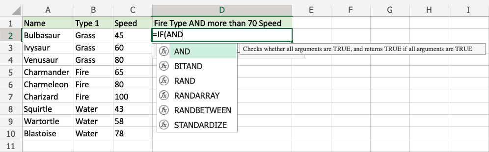 2. Type =AND