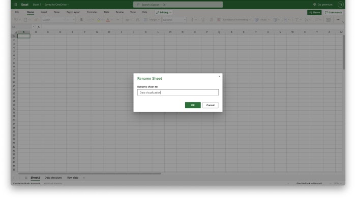 Third, enter useful names for the three sheets: