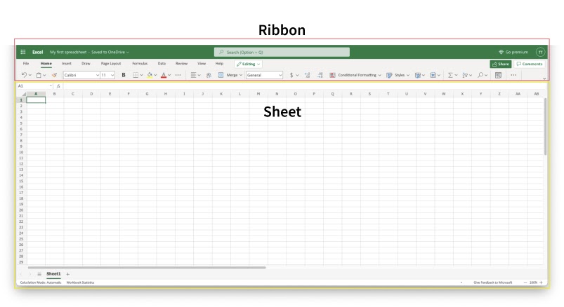 The workbook has two main components: the Ribbon and the Sheet.