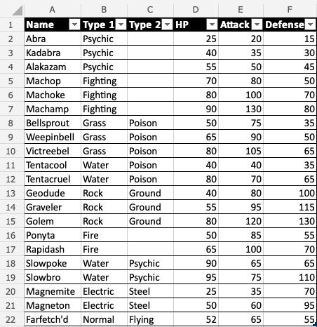 Note: The filter function is similar to a table. The filter can be better used if the only function needed is to sort and filter data.