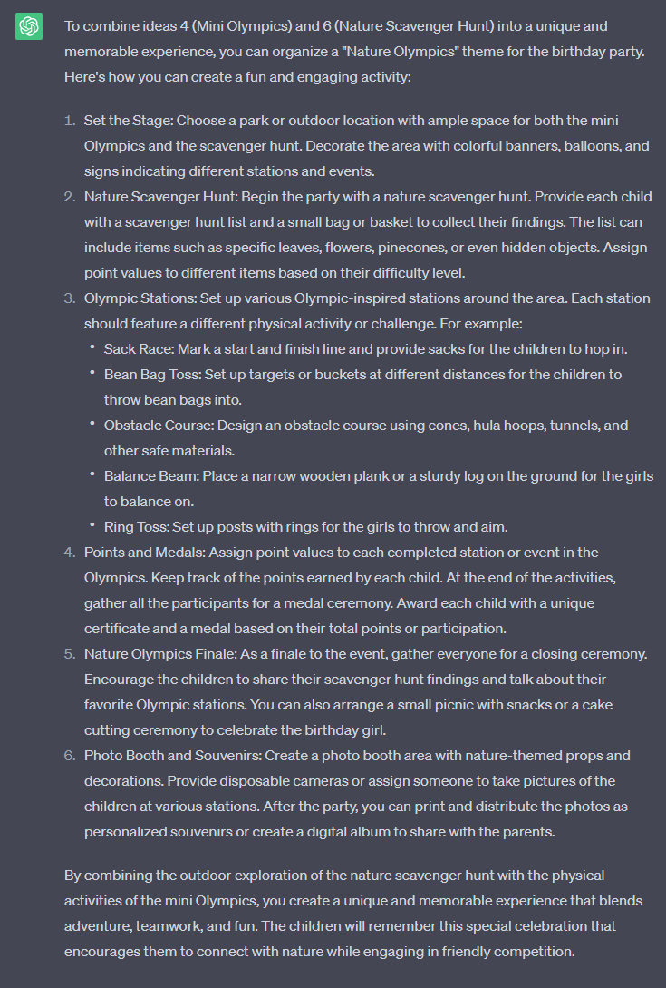 That was an example of how you can start with a basic idea and, with the help of ChatGPT, transform it into something unique.