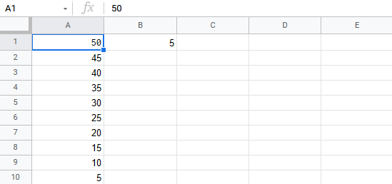 Let's keep the numbers from the last exercise. If you did last exercise, remove the value in B1.