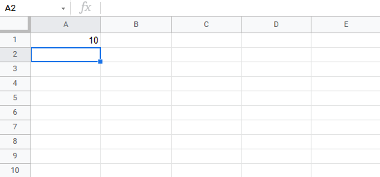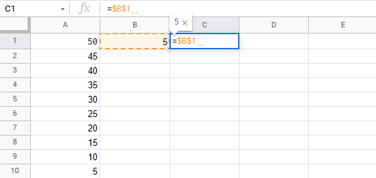 Let's have a look at an example where we add B1(5) to the range A1:A10 using absolute reference and the fill function.