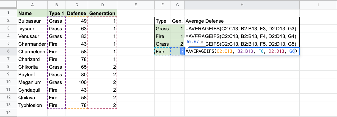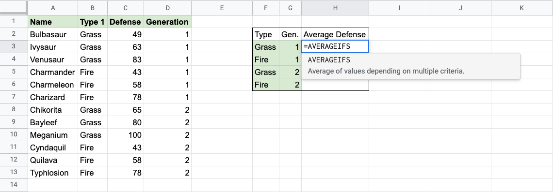 Google Sheets AVERAGEIFS Function
