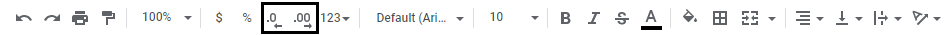 Note: Decreasing Decimals can make Google Sheets round up or down numbers as more decimals get removed. This may be confusing if you are working on advanced calculations which require accurate numbers.
