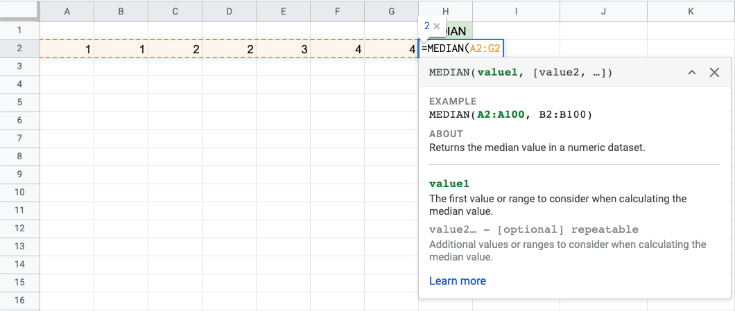 Google Sheets MEDIAN Function