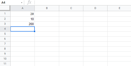 Let's add some numbers to work with. Type the following values: