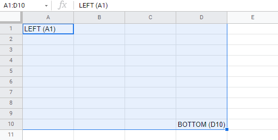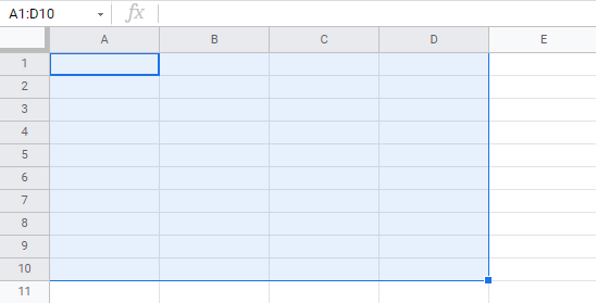 The range shown in the picture has the value of A1:D10: