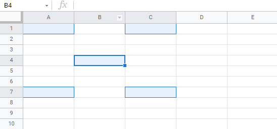 Lets try an example: Select the cells A1, A7, C1, C7 and B4.