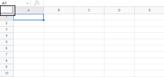 Note: You can also select the entire spreadsheet by pressing Ctrl+A for Windows, or Command+A for MacOS.